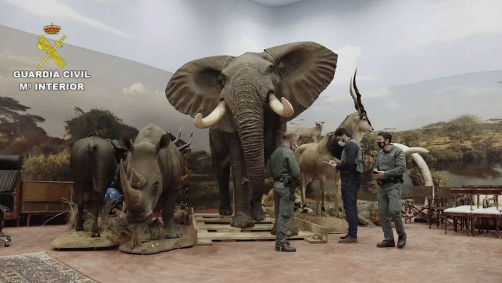 Insgesamt 1090 ausgestopfte Tiere, darunter Elefanten, Nashörner, Eisbären, Löwen, Pumas, Geparden, Leoparden und Königstiger waren dort wie in einem makaberen Museum ausgestellt. Es sei die grösste private Sammlung dieser Art, die je in Spanien entdeckt wurde, betonte die Guardia Civil. 405 der Tiere ständen auf der Liste des Artenschutzabkommen CITES. Einige seien sogar in der Wildnis schon ausgestorben wie etwa die afrikanische Säbelantilope.