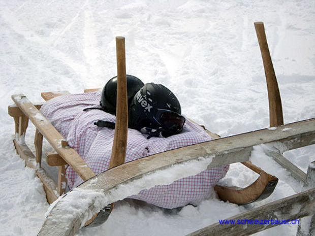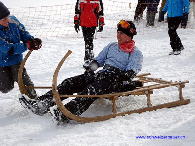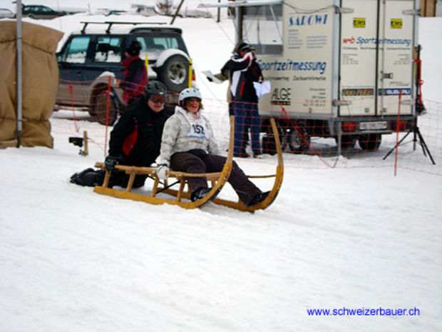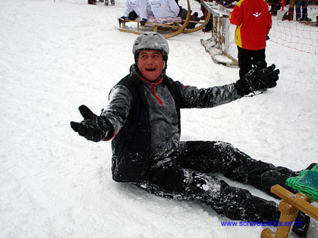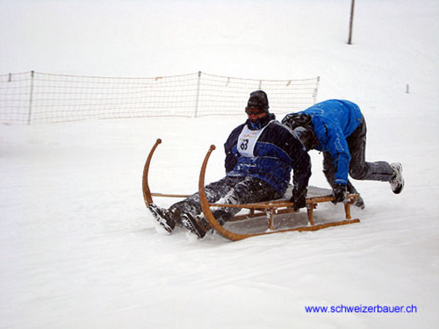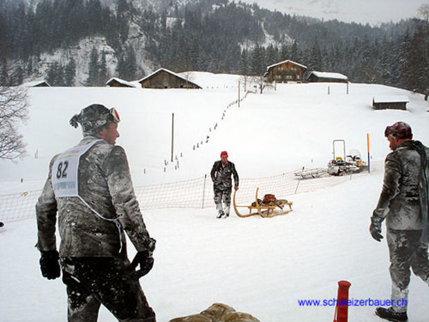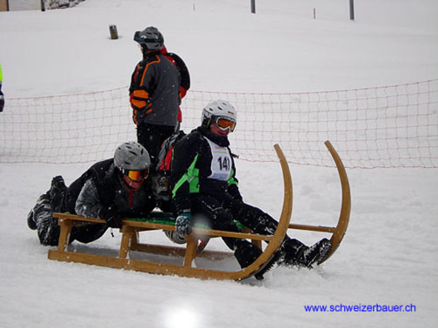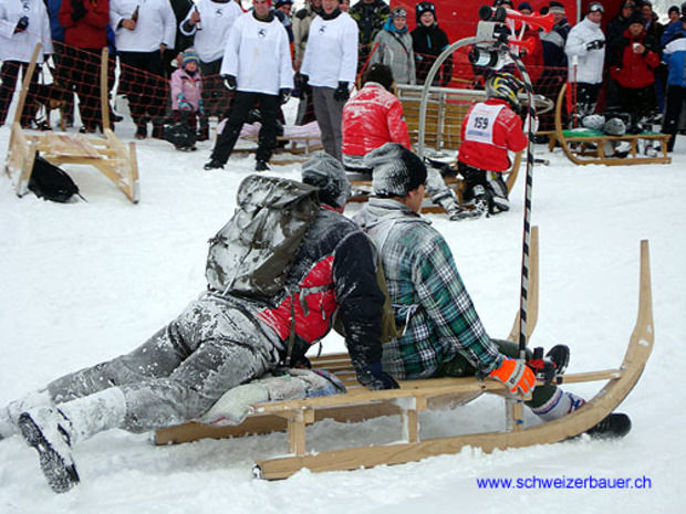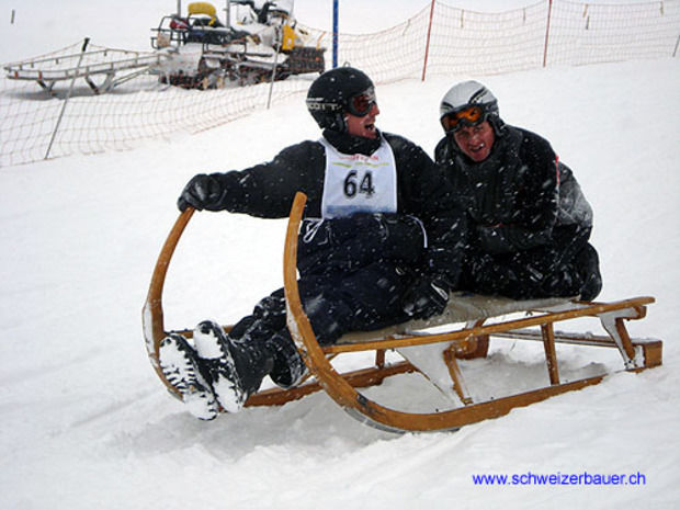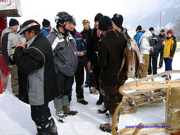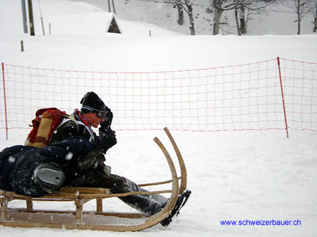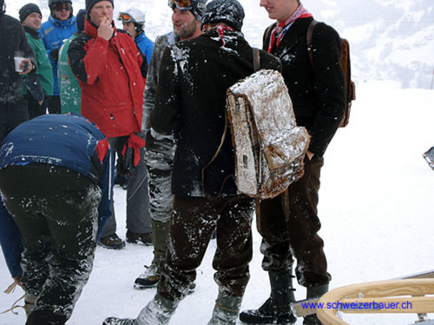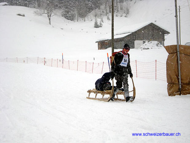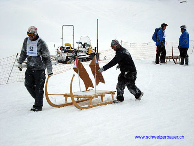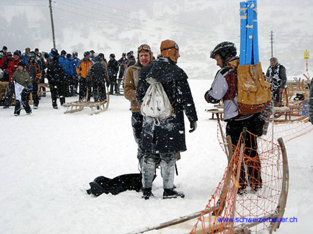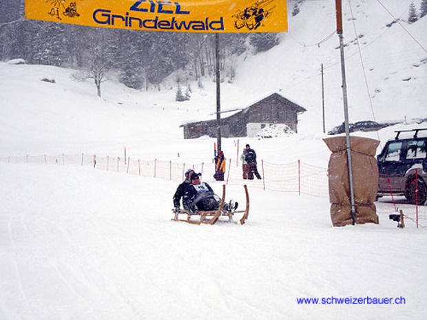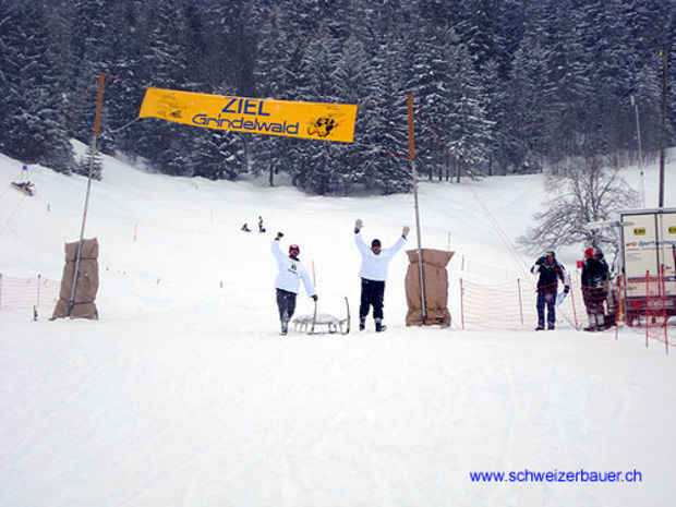 Am Samstag fand zum 13. Mal das Hornschlitten- rennen in Grindelwald statt. Trotz Schnee und Kälte stand bei den Teilnehmern der Spass im Vordergrund. Bilder: Pamela Fehrenbach.
