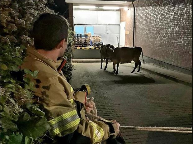 Offenbar benötigte eine weitere Kuh noch eine Spezialeinladung. Sie musste von einem Streifenwagen ausfindig gemacht werden.