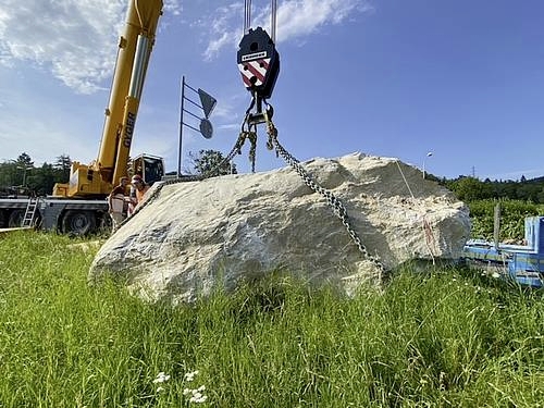 Der etwa 20 Kubikmeter grosse Findling, «ein wichtiger Zeuge der Eiszeit», werde auf einem Verkehrskreisel nahe des Fundorts installiert, teilte die Stadt Neuenburg am Donnerstagabend mit.