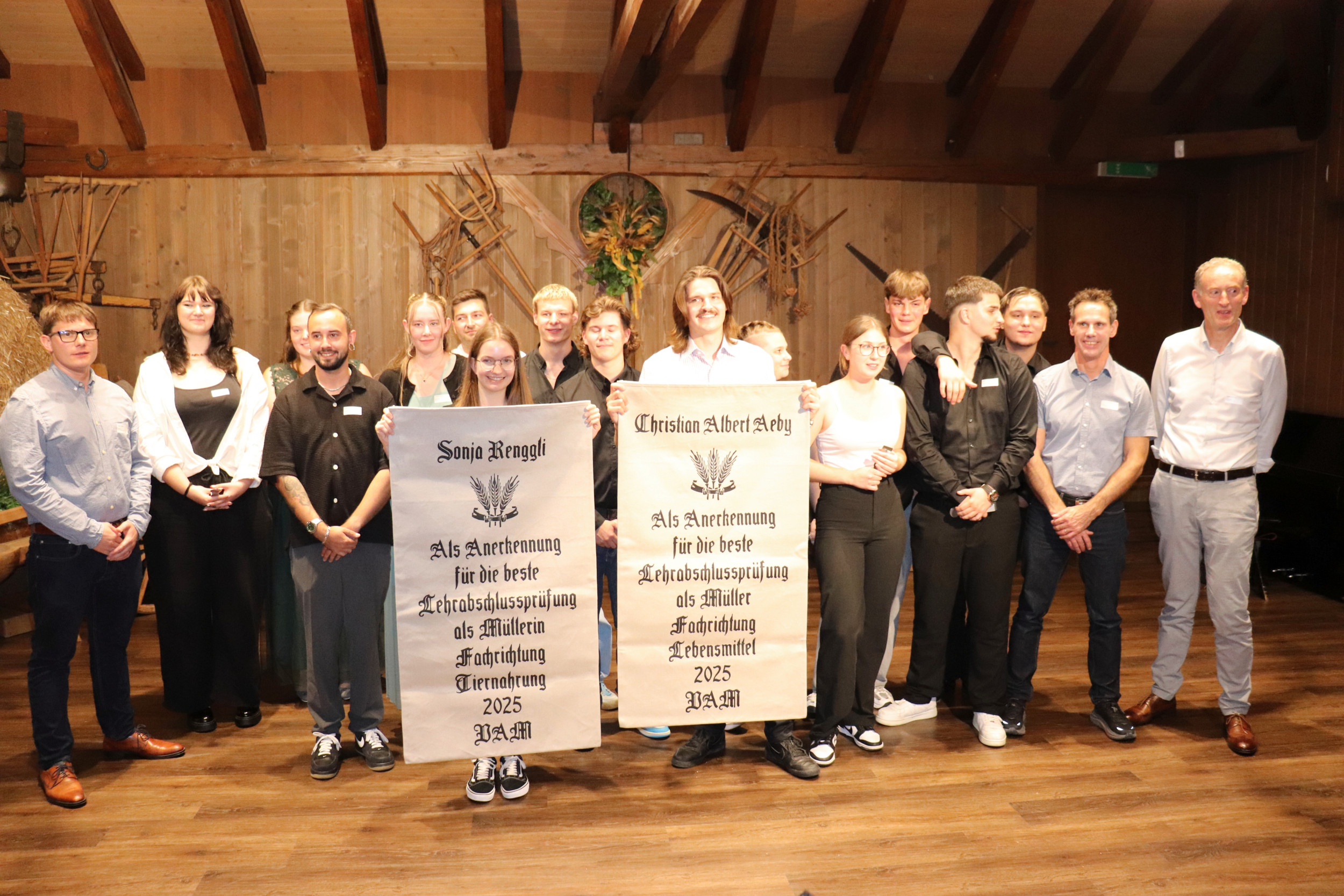 Beim Beruf Müller gibt es zwei Felder: Fachrichtung Lebensmittel sowie Fachrichtung Tiernahrung. Die Klassenbesten wurden mit einer Anerkennung ausgezeichnet. Es sind dies Christian Albert Aeby (Lebensmittel) und Sonja Renggli (Tiernahrung). Sie wurden mit einem Jutesack geehrt. Pro Fachrichtung wurde zudem ein Stipendium vergeben. «Das ist eine Investition in die berufliche Zukunft der jungen Müllerinnen und Müller», schreibt die VAM in einer Mitteilung.