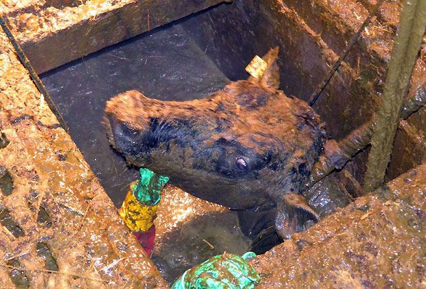 In Kerns OW sind zwei Kühe in einen vollen Güllenkasten gestürzt und verendet. Nun ermittelt die Polizei, wer den schweren Rost über der rund 1 Quadratmeter grossen Öffnung zum Güllenkasten entfernt haben könnte.