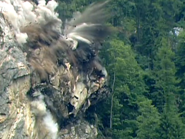 Die Sprengung am Montag war nötig, weil nach dem Felssturz vom 5. Juni weiterhin loses Gestein abzustürzen drohte und die weiteren Aufräumarbeiten blockierte.