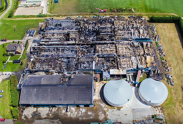 Das Feuer brach auf dem Betrieb «Knorhof» in Erichem aus, wie agrarheute.com berichtet. Die Anlage brannte vollkommen aus. Für die 2'000 Sauen, deren Saugferkel, 7'600 Aufzuchtferkel und 9'600 Mastschweine kam jede Hilfe zu spät. Entdeckt wurde das Feuer durch einen Chauffeur, der Futter anliefern wollte, wie borderij.nl schreibt. Beim Brand wurde Asbest freigesetzt. Dieser setzte sich auf einer Fläche von einer Hektare rund um den Betrieb fest.