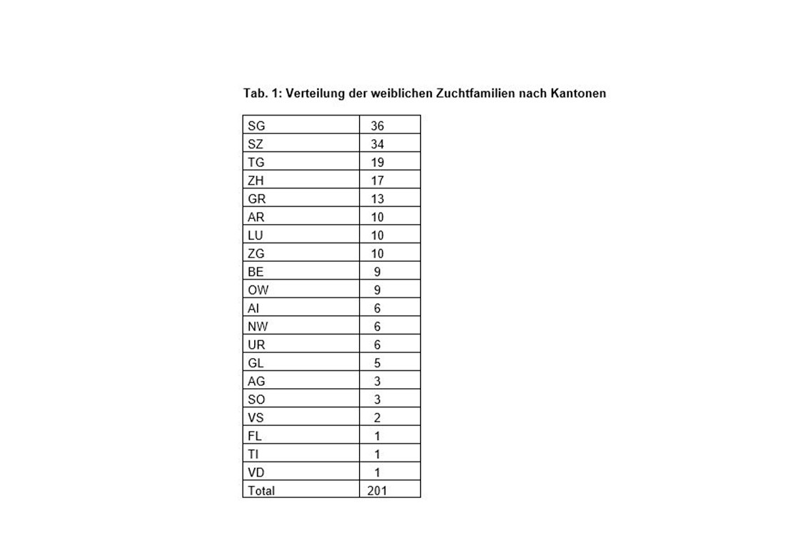 Verteilung der weiblichen Zuchtfamilien nach Kantonen