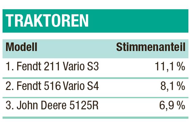Seit der Einführung unter dem Rufnamen «Alpenvario» führte der 200er schnell die Zulassungsstatstiken an. Zudem ist er aus den Spitzenplätzen nicht mehr wegzudenken. Mit gut 11 Prozent der Stimmen siegt der 211er von Fendt vor seinem «Landsmann», dem Fendt 516 Vario S4, mit 8,1% und dem Konkurrenten aus Mannheim, dem John Deere 5125R mit knapp 7 Prozent der Stimmen.