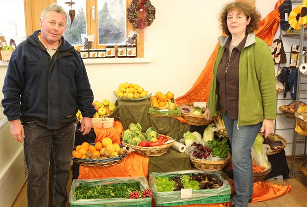 Für das Betriebsleiterpaar Sepp und Sonja Küchler gehört der Kontakt zur nicht-landwirtschaftlichen Bevölkerung sozusagen zum täglichen Brot: "An diesem Standort gibt es kein Nebeneinander. Wir leben und arbeiten quasi unter den neugierigen Augen der nahen Stadtbevölkerung." Die Direktvermarktung ist ein wichtiger Teil des Erwerbseinkommens. "Die Frequenz im Laden hängt sehr stark von der Saison und der Witterung ab." Im Spätsommer beobachtet man emsiges Treiben auf der so genannten Selbstpflückanlage. Beerenliebhaber, mit einer Schale ausgerüstet, dürfen die Früchte selbst pflücken, im Laden wägen und schliesslich nach Nettogewicht bezahlen.