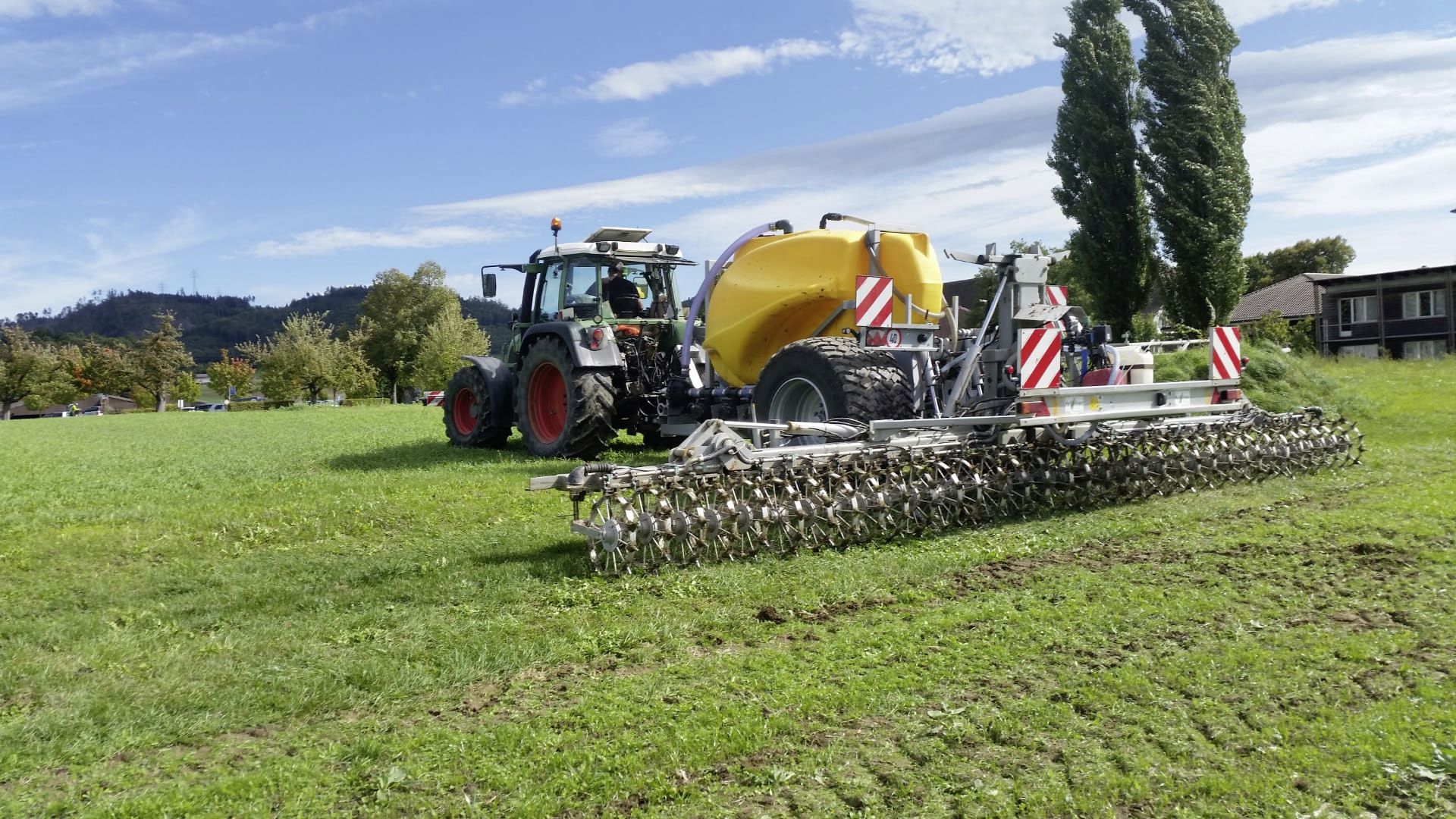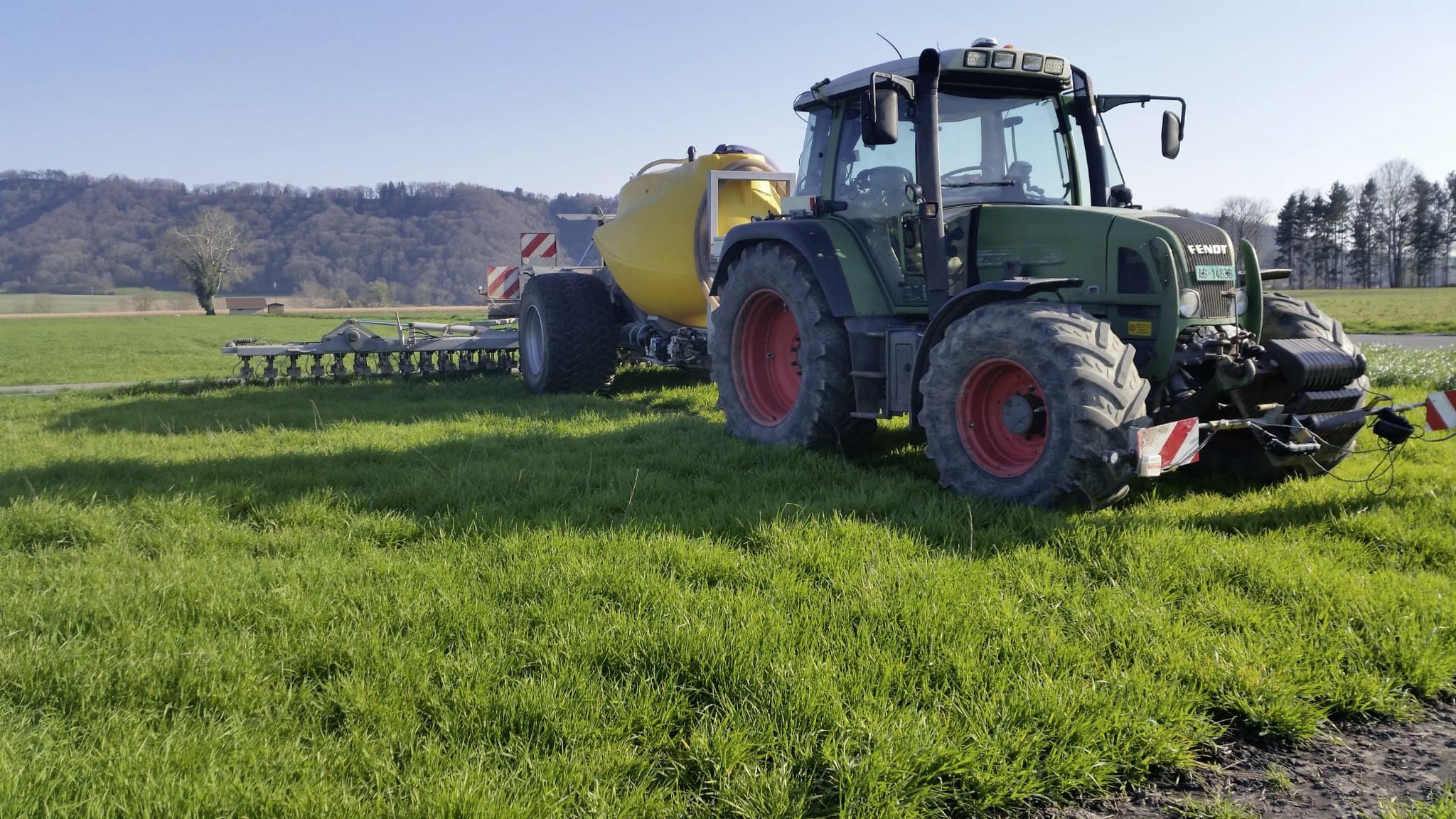 Die Logistik und das Ausbringen sind herausfordernd, denn die Gehalte im verwendeten Flüssigdünger sind tief und die auszubringenden Mengen darum gross. Aus diesem Grund ist die Ausbringmaschine meist auch mit einem Tankanhänger unterwegs.