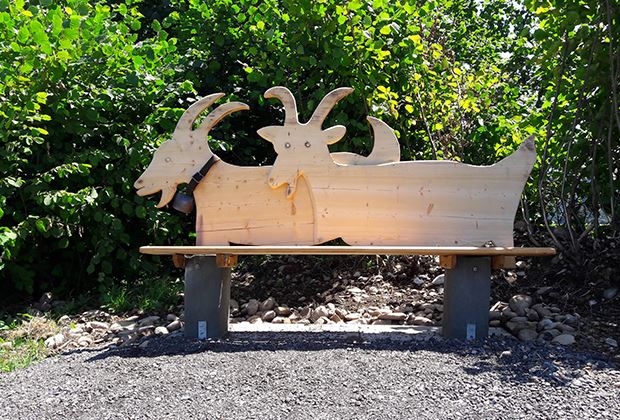 Originelle Ziegen-Sizbank: ein Plätzli zur Ruh und Rast, mit viel Liebe gemacht.