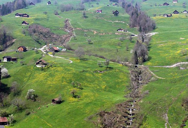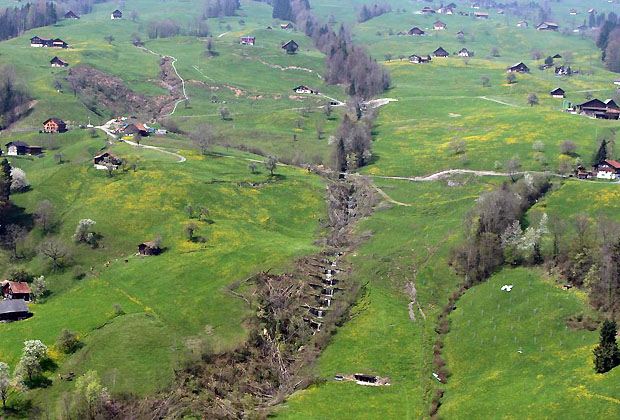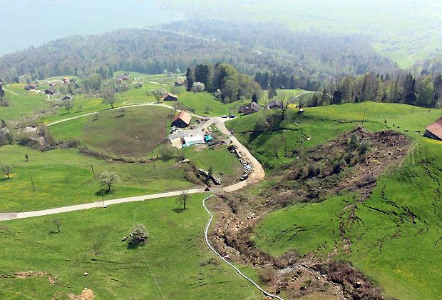 Die Rutschung aufzuhalten oder den Hang mit technischen Massnahmen zu stabilisieren, ist allerdings unmöglich. Vier Millionen Kubikmeter Boden mit einer Mächtigkeit von 20 bis 40 Metern sind in Bewegung. Dies entspricht einem Volumen von rund 60'000 40-Tonnen-Containern, die aneinandergereiht eine Länge von 720 Kilometern ergäben.