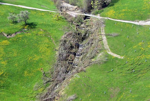 Der Gemeindeführungsstab hat das Gebiet weiträumig abgesperrt, kontrolliert täglich die Messstellen und informiert die Bewohner. Notfalls müssten Menschen evakuiert werden. «Wir haben den Bewohnern die gefährlichsten Stellen gezeigt», sagt der Geologe Markus Liniger. «Durch weitere Niederschläge kann noch mehr Wasser in die Spalten dringen. Der Boden wird weiter verflüssigt, und jederzeit können sich einzelne Erdrutsche lösen. Dann besteht Lebensgefahr.» Das Gebiet rutscht weiter – jeden Tag 10 bis 20 Zentimeter. Es wird Wochen oder gar Monate dauern, bis die Rutschung zum Stillstand kommen wird.