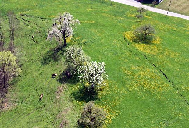 Mit einem Vertreter des Amts für Landwirtschaft kann der «Schweizer Bauer» heute im Gebiet Hintergraben einen Augenschein nehmen. Dabei wird erläutert, wie man gemeinsam mit den Betroffenen Lösungen für die Zukunft sucht. Das Rutschgebiet ist abgesperrt und für Schaulustige nicht zugänglich. Wir werden in der nächsten Ausgabe darüber berichten. ral