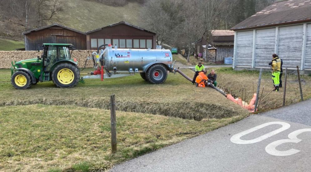 In Oberurnen GL ist am Mittwoch beim Umpumpen ein Schlauch geborsten. In der Folge sind 30'000 Liter Gülle in einen Bach geflossen.