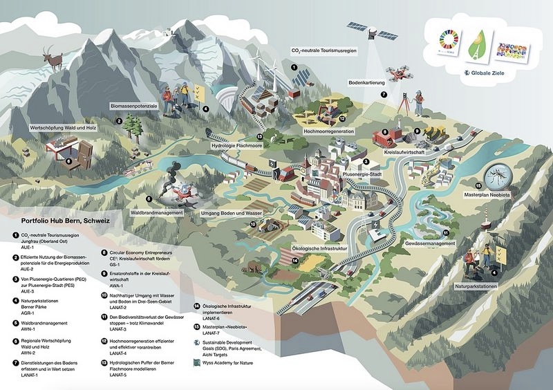 Seit 2020 seien verteilt über das ganze Kantonsgebiet 15 Projekte aufgegleist worden, die Lösungen für die grossen Herausforderungen an den Schnittstellen zwischen Klima, Biodiversität und Landnutzung suchen, erforschen und erproben sollen, schreibt der Kanton Bern in einer Mitteilung.