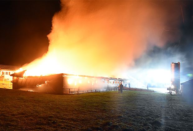 Wie der Bayerische Rundfunk berichtet, befanden sich in den zwei Ställe über 700 Mastschweine.