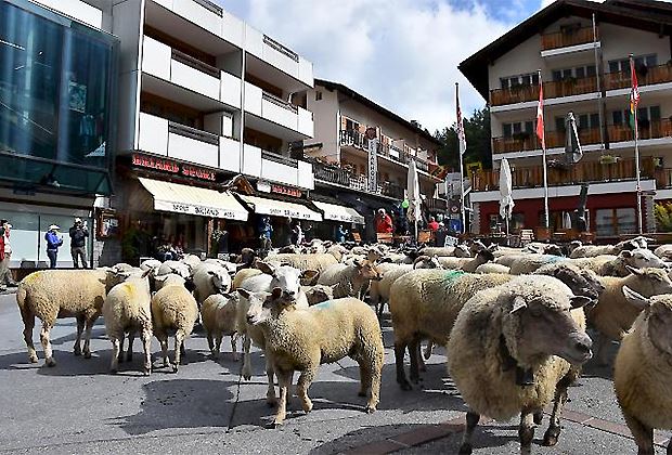 Rund 600 Schafe stiegen dabei den steilen Gemmiweg hinunter, heisst es in einer Medienmitteilung der My Leukerbad AG. Den Abzug verfolgten rund 500 Besucher auf dem Patinageplatz im Dorfzentrum.