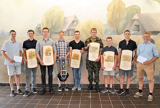 Eine Absolventin und sieben Absolventen schlossen die Ausbildung Agrarpraktiker EBA erfolgreich ab. Mit einem Notendurchschnitt von 5.5 holte sich Ruedi Lustenberger (Steinhuserberg) die Ehrenmeldung.