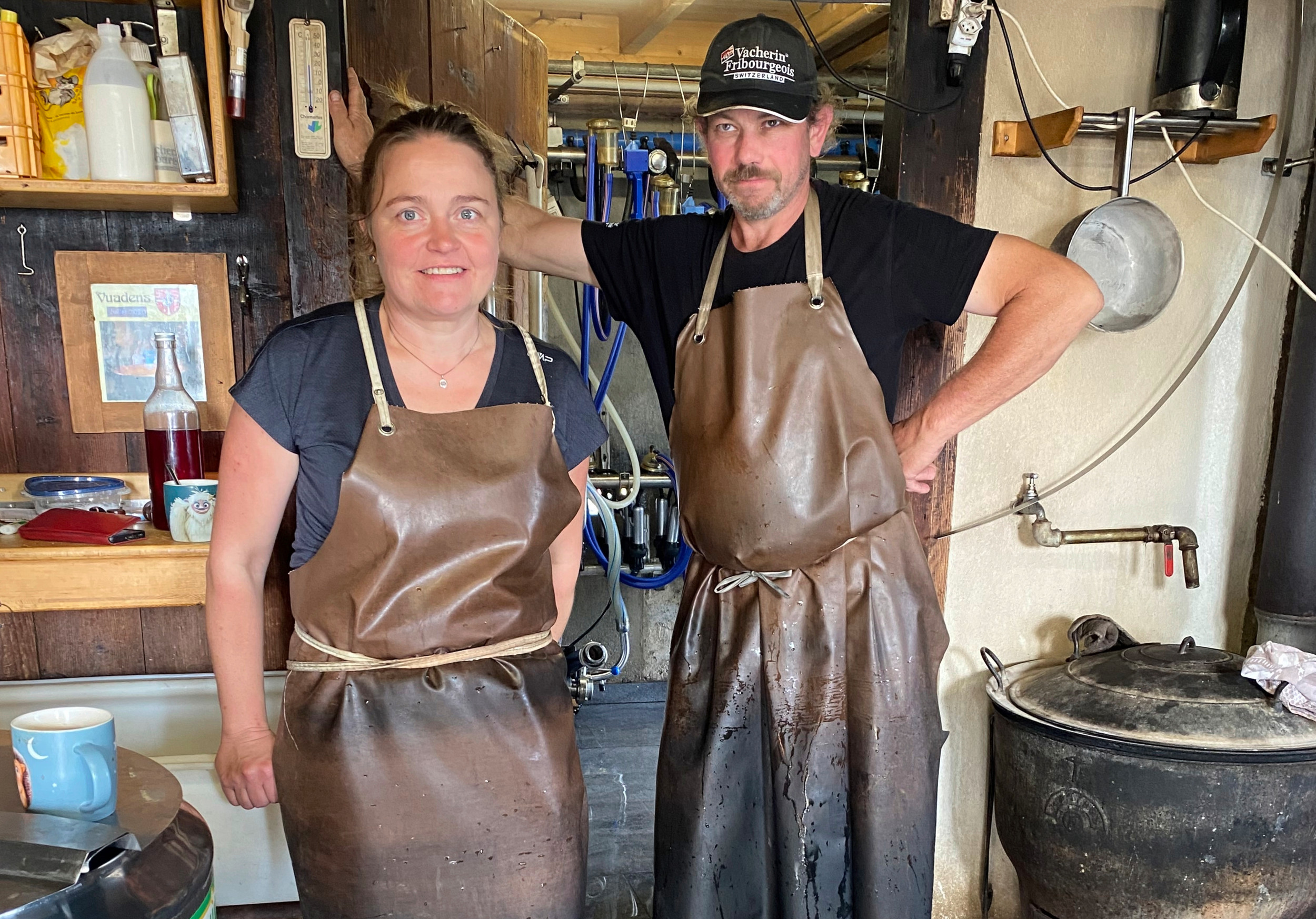 Sonja Moret und ihr Mann Olivier Moret in ihrer Alpkäserei oberhalb von Bulle FR.