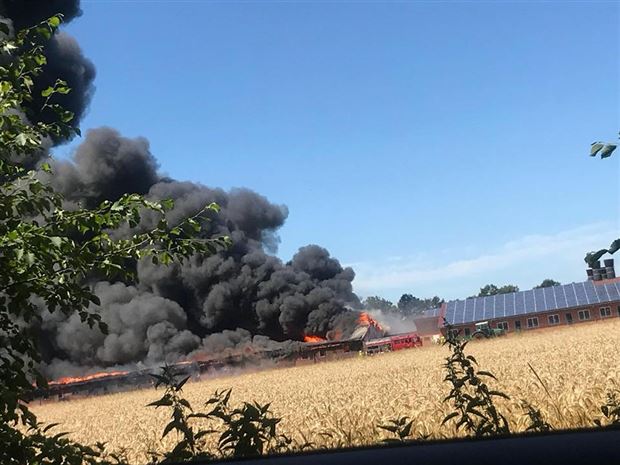 Das Flammeninferno spielte sich kurz nach 12.30 Uhr ab. Die riesige Rauchsäule war kilometerweise weit zu sehen. Gemäss dem WDR waren ein grosser Schweinestall und ein Futtersilo in Brand geraten. Auf dem Betrieb waren insgesamt 12'000 Tiere in zwei grossen Gebäuden untergebracht. Diese zwei Liegenschaften wiederum sind in kleine Ställe unterteilt.