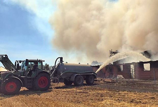 In unmittelbarer Nähe des brennenden Stalls befanden sich zwei Gastanks und zwei Silos. «Wir haben diese Objekte runtergekühlt», sagte Knebelkamp. Bei den Löscharbeiten beteiligten sich auch Bauern mit Güllefässern. Die Einsatzkräfte konnten ein Übergreifen der Flammen auf einen angrenzenden Stoppelacker und ein Gerstenfeld verhindern.