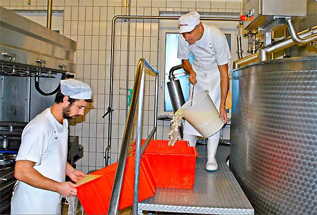 Aufgrund des AOP-Pflichtenhefts für Walliser Raclette muss die Milch zwingend innert 24 Stunden nach dem Melken verkäst werden. Aus diesem Grund wird ab 7 Uhr erst mal die Bio-Milch abgeholt und verarbeitet, anschliessend die aus dem Talgrund gesammelte Milch. In einer dritten Charge wird die Milch aus den Schattenbergen – den Dörfern Ober- und Unterems, Eischoll, Unterbäch, Bürchen und Zeneggen – verarbeitet, und zuletzt noch die Milch von der Sonnenseite des Rhonetals, wozu auch Leukerbad und das Lötschental gehören.