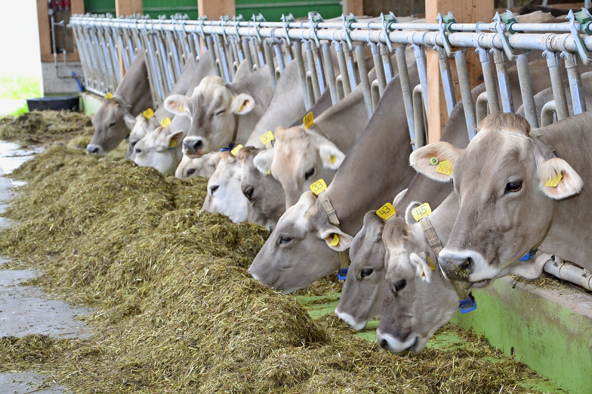 Laut Schweizer Bauernverband (SBV) fressen Schweizer Nutztiere jährlich rund 30 Millionen Tonnen Futter – umgerechnet in Trockensubstanz und ohne Wasser mache das ungefähr 8 Millionen Tonnen. Drei Viertel davon seien Raufutter, also hauptsächlich Gras und Heu, das zu 95 Prozent aus der Schweiz stamme, schreibt der Verband in einer Mitteilung.