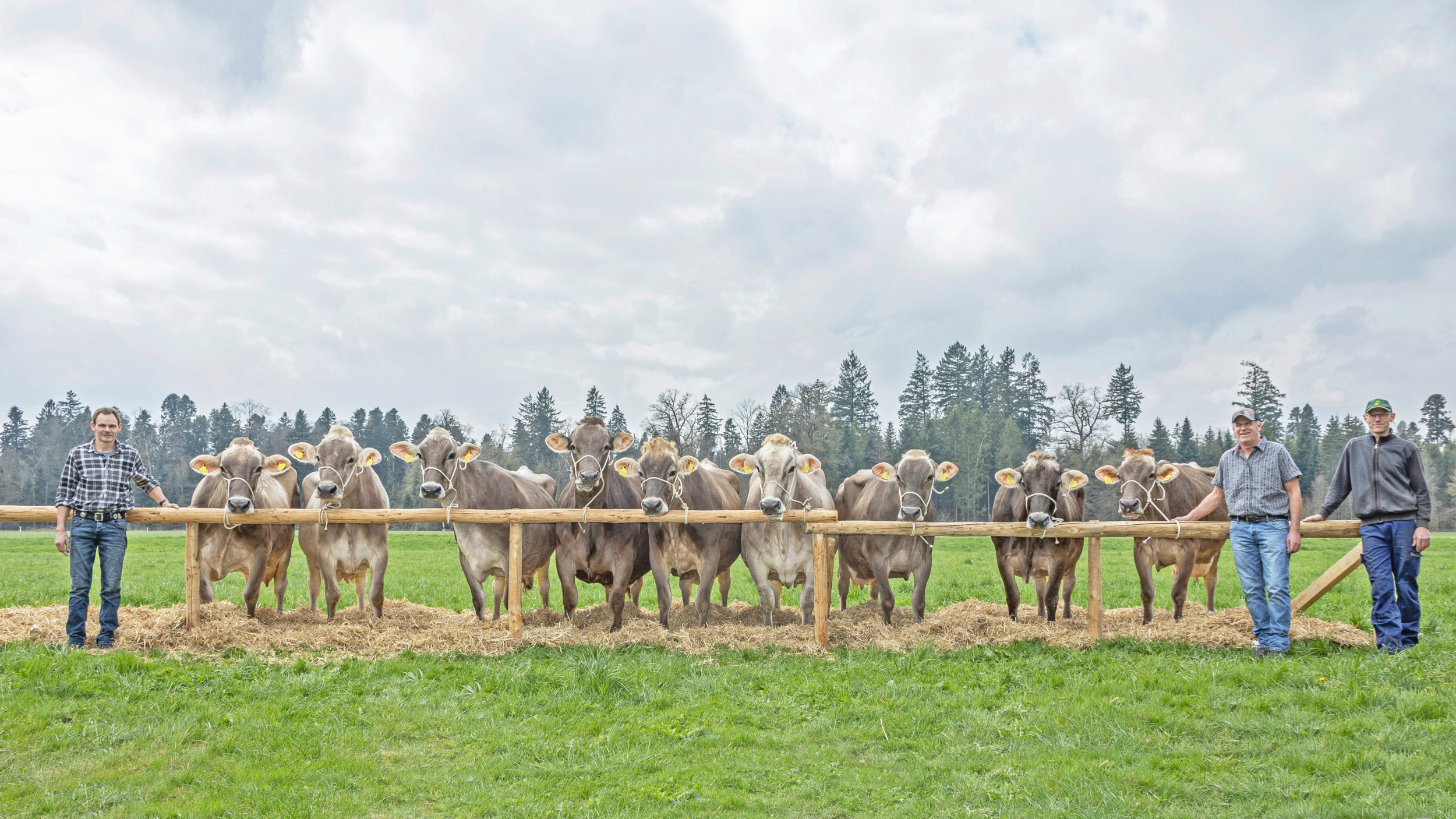 Auf dem Klosterbetrieb der BLG Frauenthal mit den Betriebsleitern Thomas Meier, Stefan Unternährer und Adrian Arnold steht aktuell eine ganz besondere Herde: Neun Kühe haben je eine Lebensleistung von über 100'000 kg Milch erreicht. Laut Braunvieh Schweiz ist dies ein neuer Rekord für die gleichzeitige Anzahl von «Hunderttausender-Kühen» auf einem Betrieb.