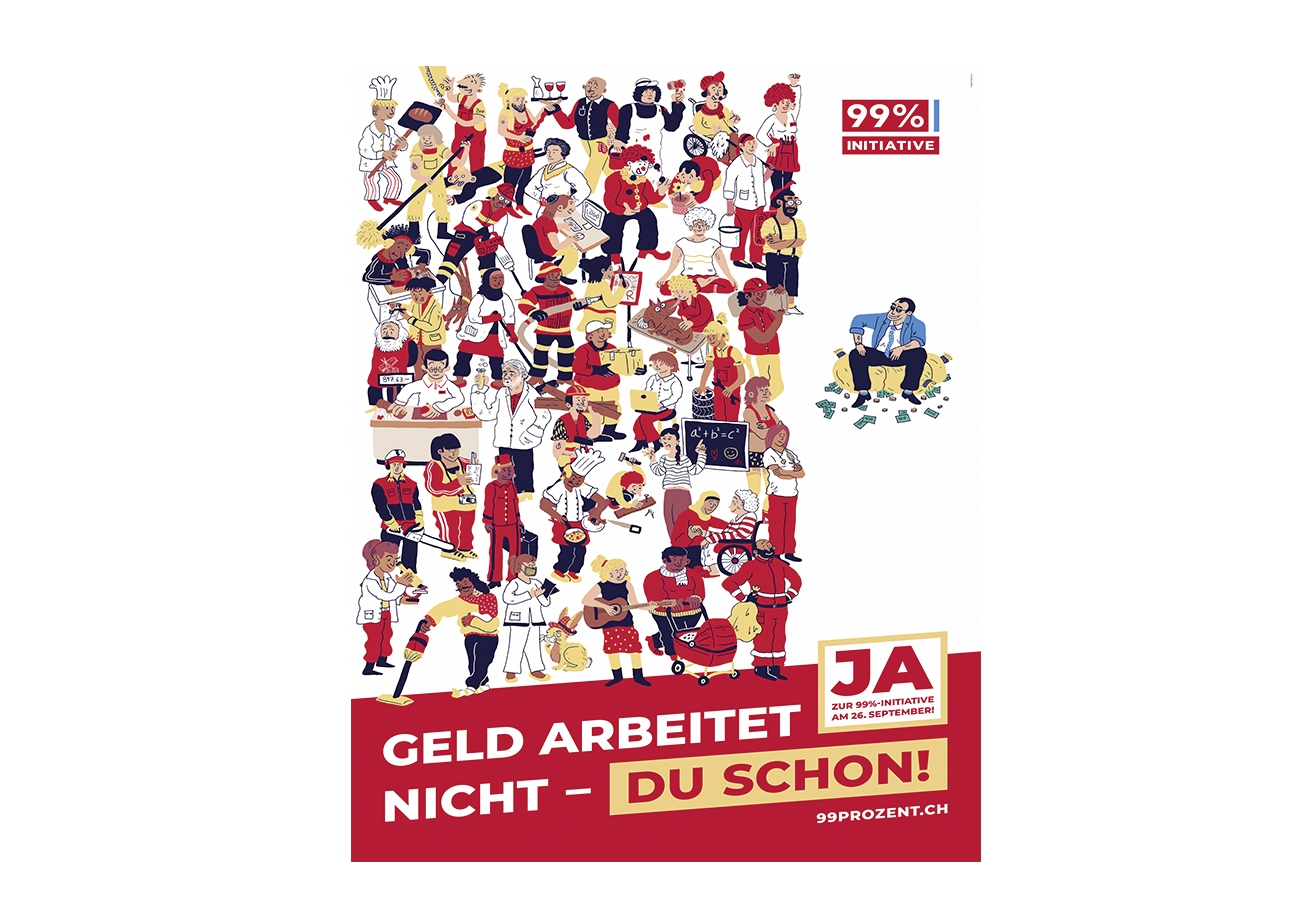 Die 99-Prozent-Initiative der Jungsozialisten (Juso) verlangt, dass Kapitaleinkommen wie Zinsen, Mieterträge oder Dividenden eineinhalbmal so stark besteuert werden wie Lohneinkommen. Jährlich gilt jedoch ein Freibetrag. Die Höhe dieses Betrags würde vom Gesetzgeber bestimmt. Die Initianten denken an etwa 100’000 Franken.
