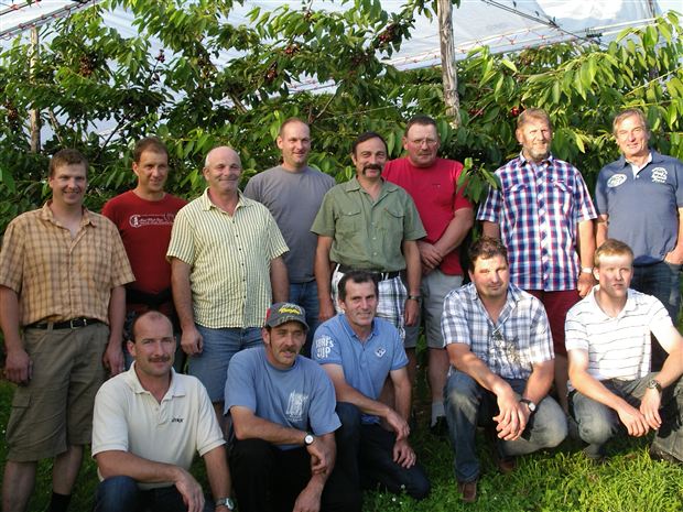 Die Anlage von Jürg Bircher zeigte sich anlässlich der Preisverleihung am 15. Juli in einem hervorragenden Zustand kurz vor der Vollernte. Rosmarie und Stephan Zuber, Aristorf BL, welche in der Nordwestschweiz in der Vermarktung eine wichtige Drehscheibe bilden, bestätigten diese geradezu prachtvolle Ernte, die da nun bevorstehe. Frau Zuber ist seit 42 Jahren im Obstgeschäft tätig. Die Preise werden im Produktezentrum (früher Obstbörse) fixiert. „Die Preise sollen für alle Beteiligten fair sein“, meinte Frau Zuber. „Der Hochstammanbau ist dabei auch weiterhin im Rennen. Aber die Qualität ist nicht überall gut, weil viele Bäume zu wenig gepflegt werden“, sagte die Fachfrau. Die Preise für die Produzenten liegen zwischen Fr. 3.70 das Kg bis zu Fr. 7.20 in der Spitzenklasse. Im Aargau kommen heute über fünfzig Prozent der Produktion aus den witterungsgeschützten Kulturen. Die grosse Investition in dieses Anbausystem zeigt vorab dieses Jahr seine volle Wirkung. Trotz langer Regenperiode und spät einsetzender Wärme erbringen jetzt diese Anlagen einen guten Ertrag.