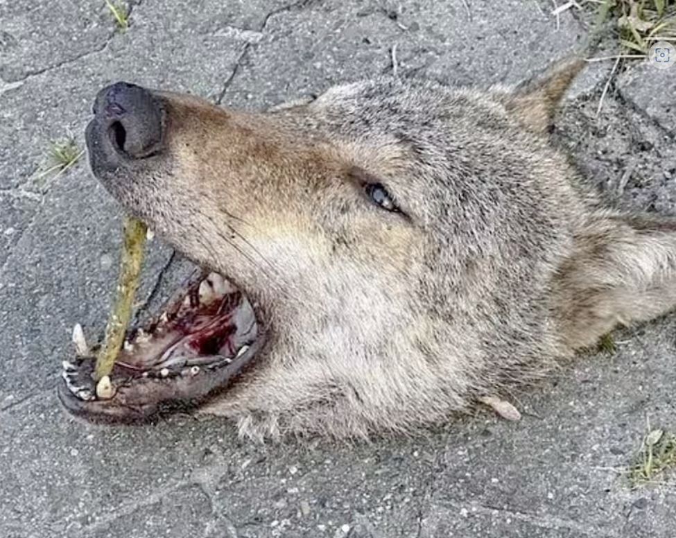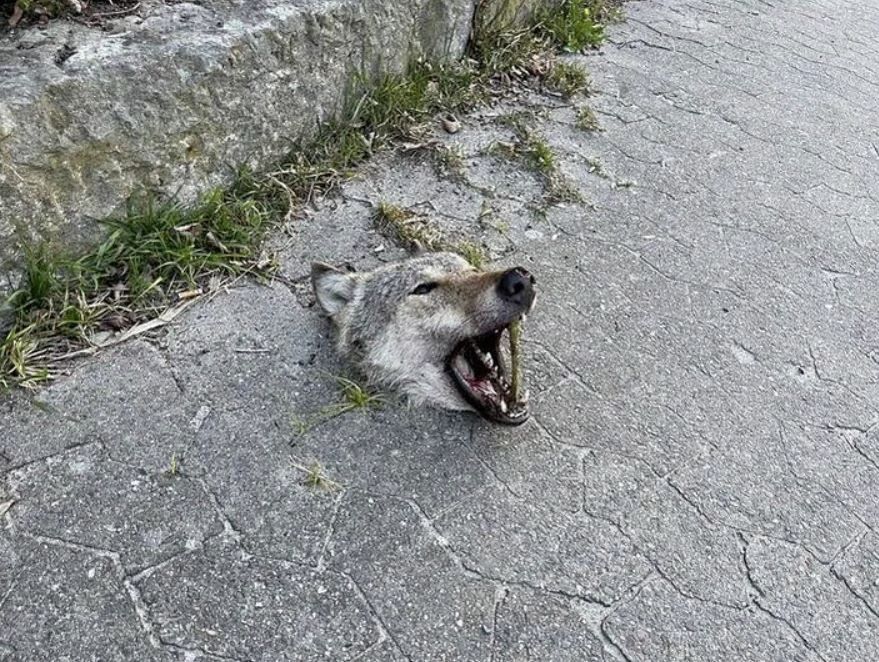 Nachdem Passanten auf den Wolfskopf aufmerksam wurden, haben sie die Polizei informiert. Derweilen kursierten auf den Sozialen Medien bereits Bilder: Diese zeigen den völlig abgetrennten Schädel eines Wolfes, dessen Maul mit einem Stock aufgesperrt wurde.