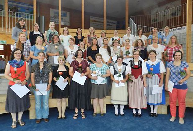 An der Abschlussfeier in Cazis GR haben 86 Absolventinnen ihr Diplom als "Diplomierte Bäuerin HFP" resp. ihren Fachausweis als "Bäuerin mit Eidgenössischem Fähigkeitsausweis FA" erhalten.