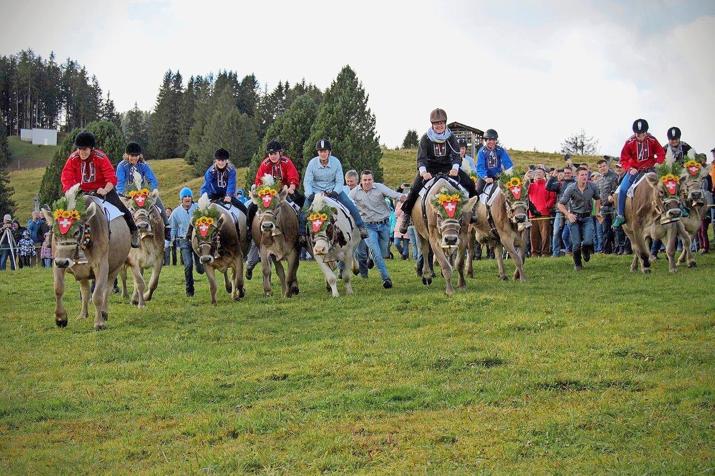 Mit dem Startsignal «Achtung, fertig, Muuh…» stürzen sich die Reiterinnen mit ihren Kühen in den Kuh-Grandprix vom Flumserberg.