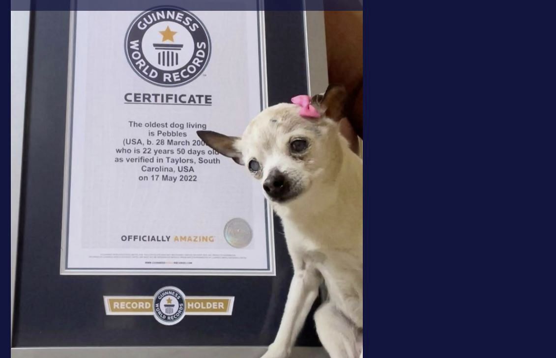 Pebbles hatte im Mai diesen Jahres den Guinness-Rekordtitel als ältester lebender Hund zugesprochen bekommen. Auf Fotos der Verleihung der Urkunde war sie mit einem rosa Schleifchen vor dem linken Ohr zu sehen. Im März wäre die Hündin 23 Jahre alt geworden.