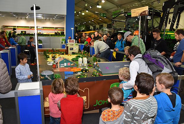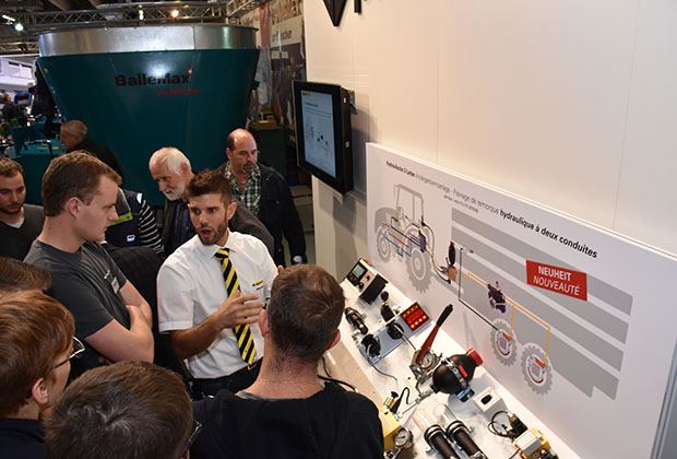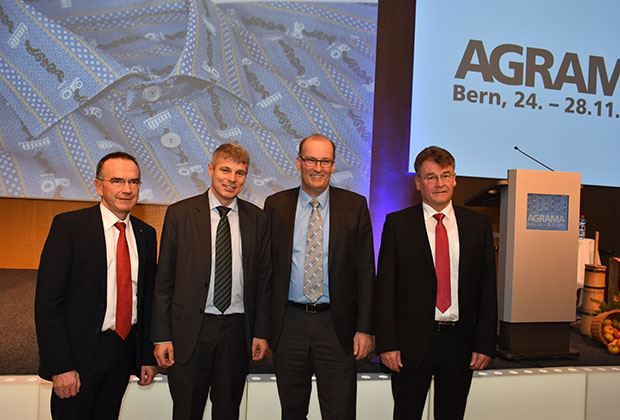 Lukas Zumsteg präsentiert den neuen Rapid Monta S mit Sensorsteuerung. Dank Billet-Vorverkauf ist der Andrang an den Kassen nicht riesengross. Na sowas. Bauernkalender-Girls und "Traktor des Jahres". Den "Schweizer Bauer" finden Sie in der Halle 3.1. Abo-Verkäufer Roland Baumberger kann Ihnen viele attraktive Angebote unterbreiten. SLV-Präsident Jürg Minger: "Enorm ist die Entwicklung in der Digitalisierung". SBV-Präsident Markus Ritter: "Ohne angemessenes Einkommen können die Bauern nicht investieren". Sie eröffneten die 26. Agrama: (v.l.) SLV-Präsident Jürg Minger, Christoph Ammann, Volkswirtschaftsdirektor des Kanton Bern, Bauernverbandspräsident Markus Ritter und Agrama-Präsident Christian Stähli. Rundballenbelüftungsanlage.Gesehen bei der Firma Sumag aus Hochdorf. Durchwegs sieht man mehr Forsttechnik. Hier ein Stepa-Rückewagen mit Kran von Steindl-Palfinger. Grunderco ist erstmals mit den Anhängern von Pronar an der Agrama. Die Firma Stocker Fräsen & Metallbau AG aus Oeschgen im Kanton Aargau zeigt unter anderen ihren Standhäcksler, der für Betriebe mit Hochsilo gebaute worden ist. Manitou präsentiert neue Teleskoplader. Selbstfahrende Spritze Raptor von Berthoud mit 4200 Liter Fassungsvermögen. Reform Metrac H8X mit Pöttinger-Frontmähwerk Novalpin 261. Der neue Vielschnittladewagen PrimAlpin von Reform. Neuer Schleppschuh-Verteiler bei Hochdorfer Gülletechnik. Pneumatisches 2-Leiter-Bremssystem. Die neuen Bremsvorschriften sind ein grosses Thema an der Agrama. Hier bei der Paul Forrer AG ... und einen Kammschwader aus Aluminium. Brielmaier zeigt einen neuartigen Pick-up-Schwader in Leichtbauweise. Natürlich gibt es auch grosses zu sehen. Hier die neue 5R-Baureihe von John Deere. John-Deere-Maschinen im Massstab 1:32. Natürlich ferngesteuert. Von dem gibt es nur wenige Stück. John Deere Raupenschlepper 9620 RX im Format 1:32. Hoflader von Schäffer. Die Streifenfrässe Oekosem bei Bärtschi. Die Berner Fachhochschule zeigt den Hymog. Eine teilautonome Plattform mit Diesel- und Elektroantrieb für verschiedene Feldeinsätze. Lectura ist ein Bewertungsprogramm zum Bestimmen des Restwerts von Occasionsmaschinen. Auch Zwischenverpflegung muss sein. Bendicht Hänni ist mit seinem Modellspielland am Stand der Robert Aebi Landtechnik AG. Die Agrama lockt auch in diesem Jahr wieder mit vielen neuen Traktoren und Landmachinen.