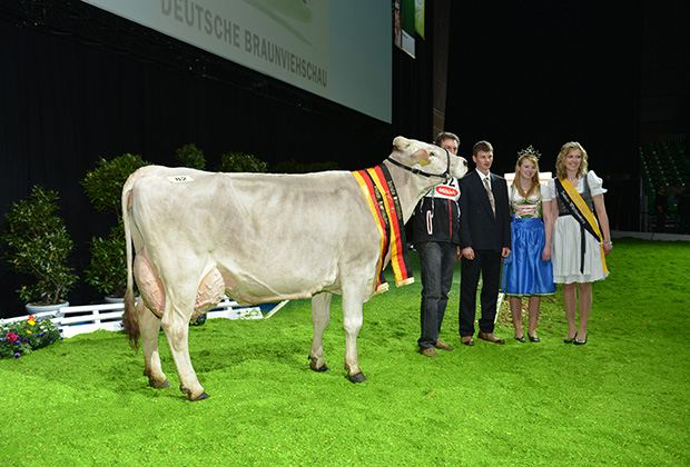 Ebenfalls in der Big Box in Kempten fand anschliessend an den Europakongress die Bundesschau der deutschen Braunviehzüchter statt. Diese fand auf einem guten Niveau mit vielen sehr leistungsfähigen Kühen statt. Als Richter amtete Matthias Voppichler, Hittisau. Jungkuhchampion wurde die Fernando-Tochter Usalla aus dem Stall der Stockingen Dairy GbR, vor Ace Sissi von Michael Bilgeri, Balderschwang. Siegerin jung (2. Laktation) wurde die sehr euterstarke Husjet-Tochter Hedina von Norbert Meggle aus Reicholzried.
