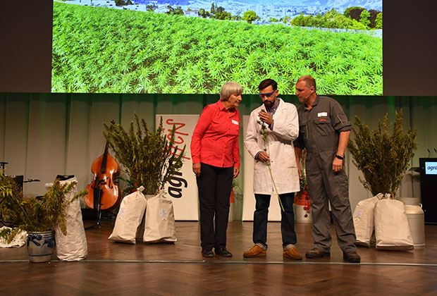 Verleihung Agropreis 2018 Verleihung Agropreis 2018 Das Publikum kostet am Stand von La Boulotte Fleisch. La Clef des Champs aus der Ajoie (JU) stellt im Vorfeld der Agropreis-Verleihung dem Publikum ihr Projekt vor. Am Stand von Clef des Champs gibt es ihr Gemüse zu sehen. Hier gibt es Kürbiskerne. Bernhard Heusler zeigte in seinem Referat auf, was er braucht, um erfolgreich zu sein. Die Blumen für die nominierten Teams stehen bereit. Die Erfinder des Flunick ist Andi Reichenbach aus Hausen am Albis (ZH). Der SLV-Preis ist mit 5000 Franken dotiert. Der Riesenkürbis steht für das Projekt mit den Kürbiskernen. Ein Projekt dreht sich um Hanf. Christian Rychen (r.), Chef der Emmental-Versicherung und Bauernverbandspräsident Markus Ritter sind bereit für die Verleihung des Agropreis. Christian Rychen, Chef der Emmental-Versicherung heisst die Nominierten und die Gäste willkommen. Bendicht Hauswirth Jurymitglied des SLV-Spezialpreises stellt die innovative Maschine, die den Preis geholt hat, vor. FLUNICK. Ein multifunktionaler Geräteträger für Hängelagen. Er nimmt dem Bauern die Jäte-Arbeit ab. Der FLUNICK wurde nach den Söhnen des Erfinders, Flurin und Nick benannt. Der Erfinder des FLUNICK erhält den Spezialpreis des SLV. Andi Reichebach aus Hausen am Albis ZH gewinnt damit 5000 Franken. Die Nominierten für den Agropreis. Wirklich dumm, dass man Hanf auf THC reduziert. Die Vorteile von Hanf werden erklärt. Hanf liefert wertvolles Protein. Das Kürbisprojekt wird präsentiert. Familie Brütsch setzt sich seit zwanzig Jahren für Kürbis ein. Für musikalische Unterhaltung sorgten Schabernack. Das Projekt La boulotte wird vorgestellt. Jung und dynamisch kommt La Clef des Champs daher. La clef des champs auf der Bühne. Voller Energie präsentiert sich die Gemüsegenossenschaft aus dem Jura. Markus Ritter und Ueli Schmezer gemeinsam am Diskutieren. Der Leserpreis vom Schweizer Bauer und Terre et Nature ging an La Clef des Champs. Der Saalpreis ging an Andreas Näscher und Alpenpionier mit dem Lebensmittelhanf. Roland Stähli, Jurypräsident bei der Bekanntgabe des Agropreis-Siegers. Die stolzen Agropreis-Gewinner. Die Freude über den Agropreis ist gross. 20'000 Franken werden überreicht. Der Nachwuchs in Feierlaune. Bei der Agropreisverleihung. Die strahlenden Sieger.