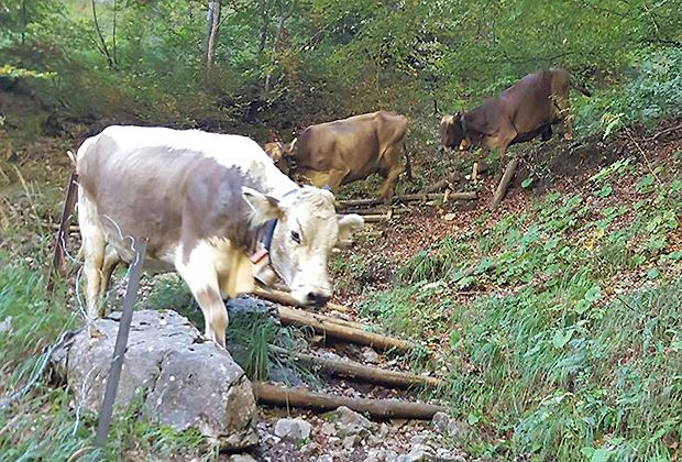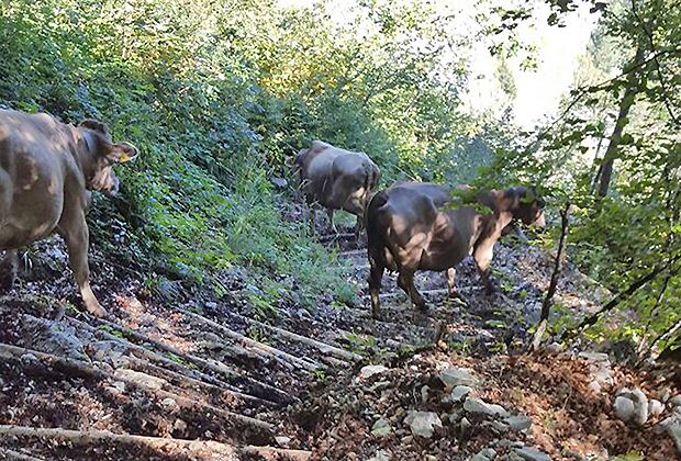 Der Wegzustand auf die Auerenalp ist derzeit so schlecht, dass aus Sicherheitsgründen die Tiere auf die Alp geflogen wurden. ,