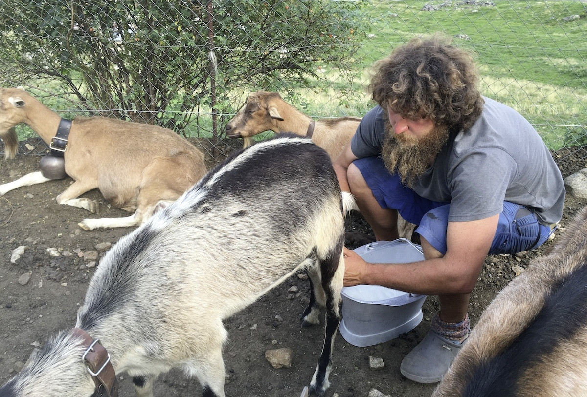 « Der Betrieb In Sü La Scima hat zwei Unterkünfte: den Winterstall in Brione Verzasca auf 750 Meter Höhe und die Alpe Vald in Gerra Verzasca auf 1270 Meter Höhe», erklärt Lorenzo Schärer. Der Weg zwischen diesen stellt den Übergang zwischen den verschiedenen Jahreszeiten von 140 Ziegen, einem Dutzend Mutterkühen, Wach- und Hirtenhunden, einer Gruppe von Bienen, einigen Hühnern, Schweinen und Katzen dar.