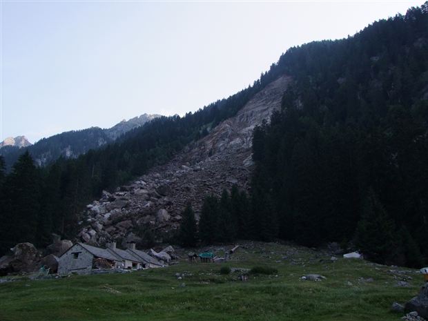 Der Felssturz hinterliess ein Bild der Verwüstung. Durch den Schutzwald haben sich die Gesteinsmassen eine Schneise geschaffen. Zwei gewaltige Brocken kamen unmittelbar neben der Hütte zu liegen. Die Alp del Lago ist nur zu Fuss oder über den Luftweg erreichbar. Der Wanderweg ins Val Cama wurde aus Sicherheitsgründen bis auf Weiteres geschlossen. Im Gebiet um die Alp del Lago herrscht weiterhin Steinschlaggefahr. Ob die Alp wieder in Betrieb genommen werden kann, ist ungewiss.