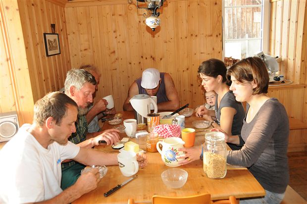 Während für Ueli neben dem Melken die Hauptarbeit in der Käsezubereitung und -pflege liegt, widmet sich Margrit tagsüber ihren Aufgaben. Sie managt den Haushalt, kümmert sich um den Gemüsegarten, bedient die Gäste, die auf der Terrasse des Alpbeizlis einen Zwischenhalt einlegen, bäckt Brote oder den traditionellen Toggenburger Schlorziflade, pasteurisiert den Alprahm und macht leckere Joghurt oder feine Panna cotta. Sie möchte den Besuchern unvergessliche Momente auf der Alp bescheren, zum Beispiel mit einem einzigartigen Mondscheinfondue oder einem 1.-August-Raclette auf der Alp oder dem Mulchentag am 28.Juli, an dem die Genussreife des diesjährigen Alpkäses gefeiert wird. Diesmal wahrscheinlich etwas öffentlicher als auch schon. Noch bis am 2. August lässt die Familie ja das Fernsehen an ihrem Älplerleben teilhaben.