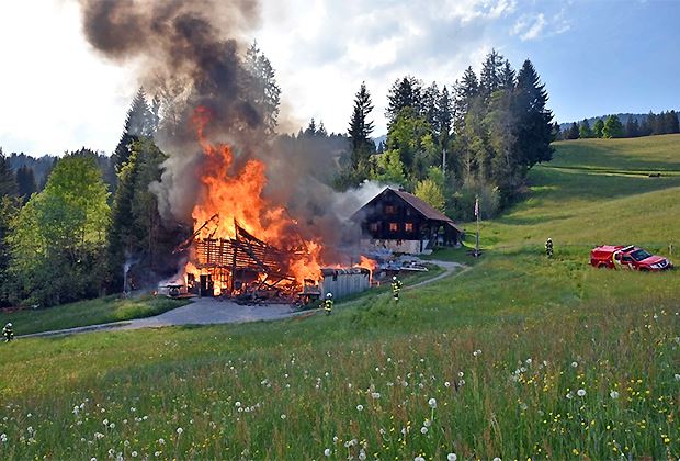 Die Rettungskräfte wurden am späteren Nachmittag über den Brand alarmiert. Als die Feuerwehr am Brandplatz eintraf, stand der Stall bereits in Vollbrand.