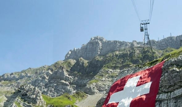 Höhenarbeiter montierten am Mittwoch bei Sommerwetter die 80 mal 80 Meter grosse Flagge an der Nordwand des Ostschweizer Hausbergs. Sie seilten sich an der Felswand ab und entrollten die Fahne, wie ein Korrespondent der Nachrichtenagentur Keystone-SDA berichtete.