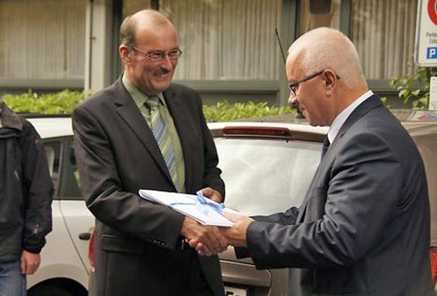 SBV-Präsident Markus Ritter und Olivier Kolly als Vertreter der Junglandwirte übergaben die 102-seitige Stellungnahme vor dem BLW an Direktor Bernard Lehmann. Der Bauernverband verlangt darin unter anderem höhere Beiträge für Ackerbau und Dauerkulturen sowie administrative Vereinfachungen.