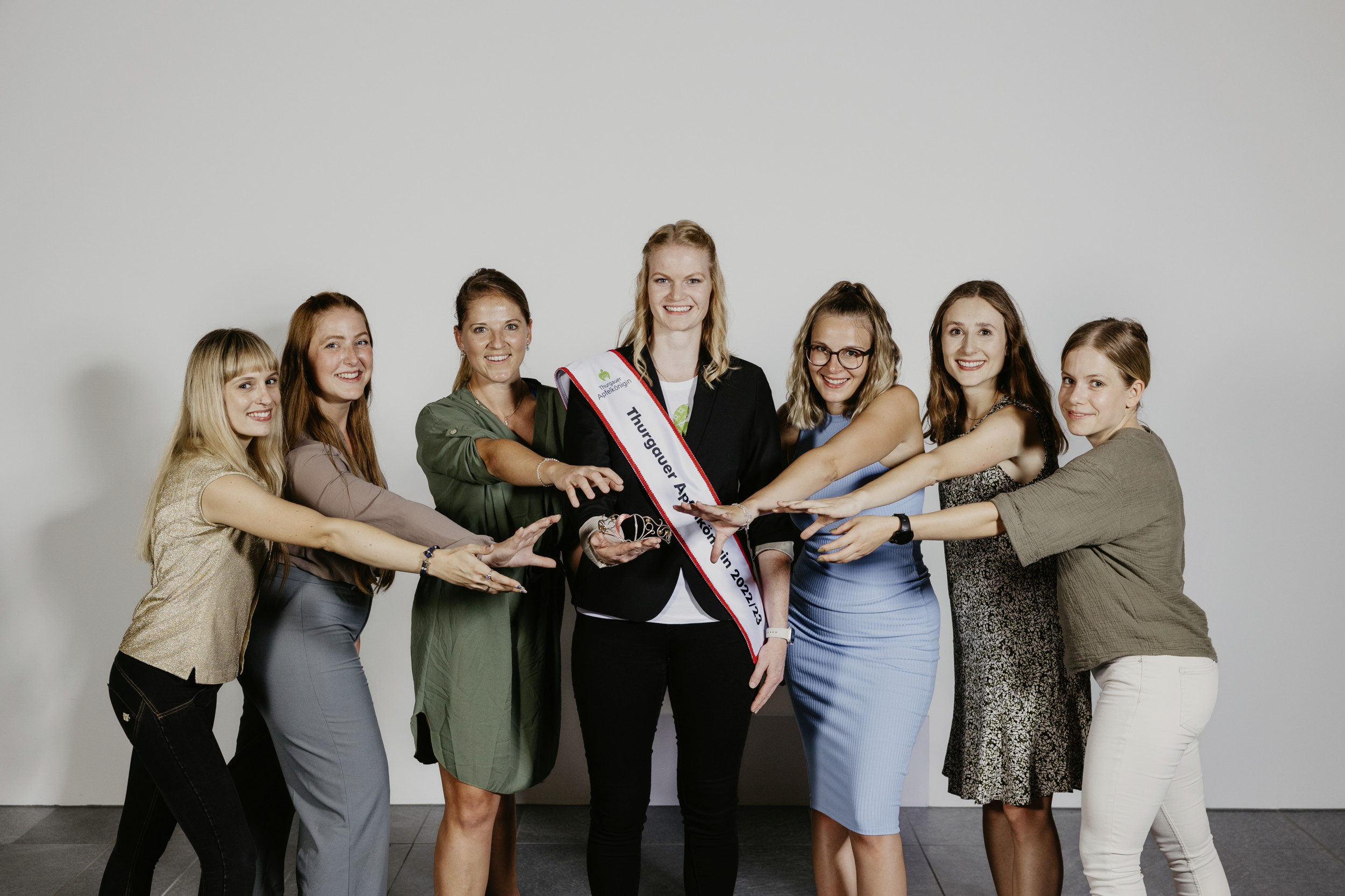 Neben ihren Antworten und ihrem Bezug zum Apfel zeigten die Kandidatinnen, dass sie über eine tiefe Verbundenheit zum Kanton verfügen, obwohl nicht alle im Thurgau geboren und aufgewachsen sind. «Für die Jury war es alles andere als eine einfache Wahl», teilen die Organisatoren denn auch mit. Schliesslich fiel die Wahl auf folgende sechs Finalistinnen: Melanie Eggenberger (Weinfelden), Colette Ammann (Bettwiesen), Leonie Rupper (Ettenhausen), Marina Schenker (Frauenfeld), Larissa Raguth Tscharner (Hauptwil) und Caira Imfeld (Wängi).