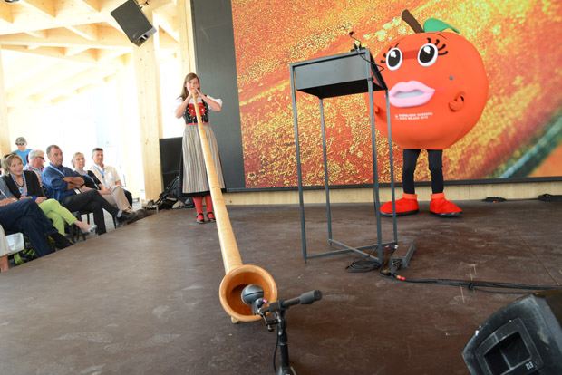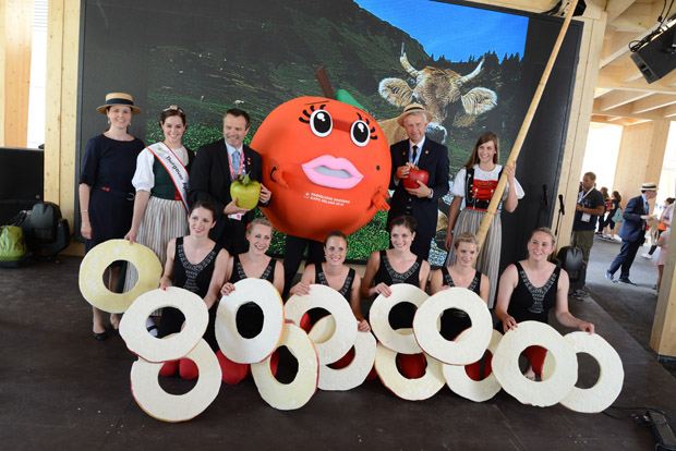 Der Schweizer Bauernverband lud an Auffahrtzum „Apfelringliturmfest“ auf dem Schweizer Pavillon an der Expo Milano ein. Die bekannte Alphornbläserin Lisa Stoll umrahmte den Anlass musikalisch und eine Gruppe Turnerinnen um die Apfelkönigin Monika Ausderau setzte mit einem „Danza delle mele“ den Apfel und die Apfelringli in Szene.
