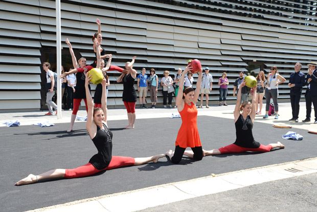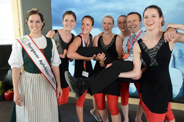 Expo Milano - Die Turnerinnen nehmen Urs Schneider hoch - buchstäblich