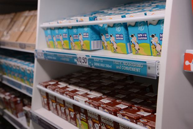 Expo Milano - In den eher kommerziell orientierten Ständen kann man überall Lebensmittel kaufen, so auch Milch