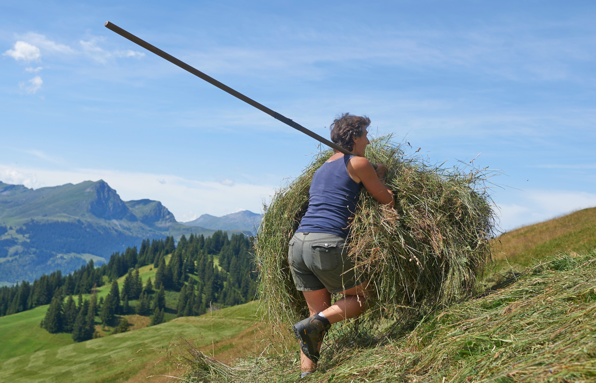Viele Bergbäuerinnen und -bauern sind froh um die Unterstützung von Freiwilligen bei der Handarbeit an den steilen Hängen.