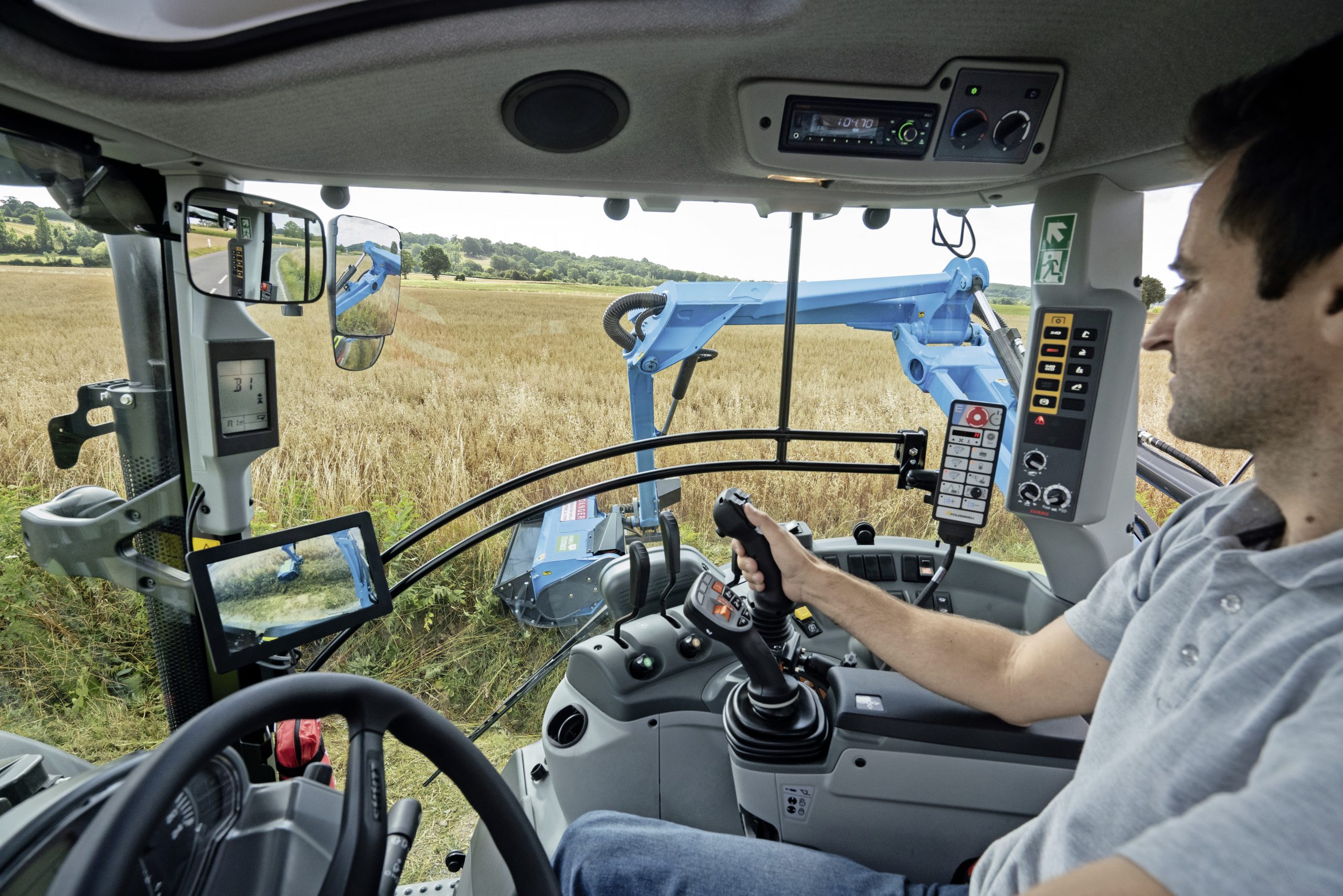 Dazu lassen sich die Arion 400 neben der serienmässigen Hochdachkabine mit Dachluke oder Glasdachluke wahlweise mit einer Niedrigdachkabine oder der Panoramic-Kabine konfigurieren. Letztere bietet nicht nur eine Rundumsicht, sondern dank der 2,41 m2 grossen durchgehenden Frontscheibe auch eine hervorragende Sicht auf ausgehobene Frontladerwerkzeuge. Türen mit weitem Öffnungswinkel ermöglichen ein komfortables und sicheres Auf- und Absteigen.
