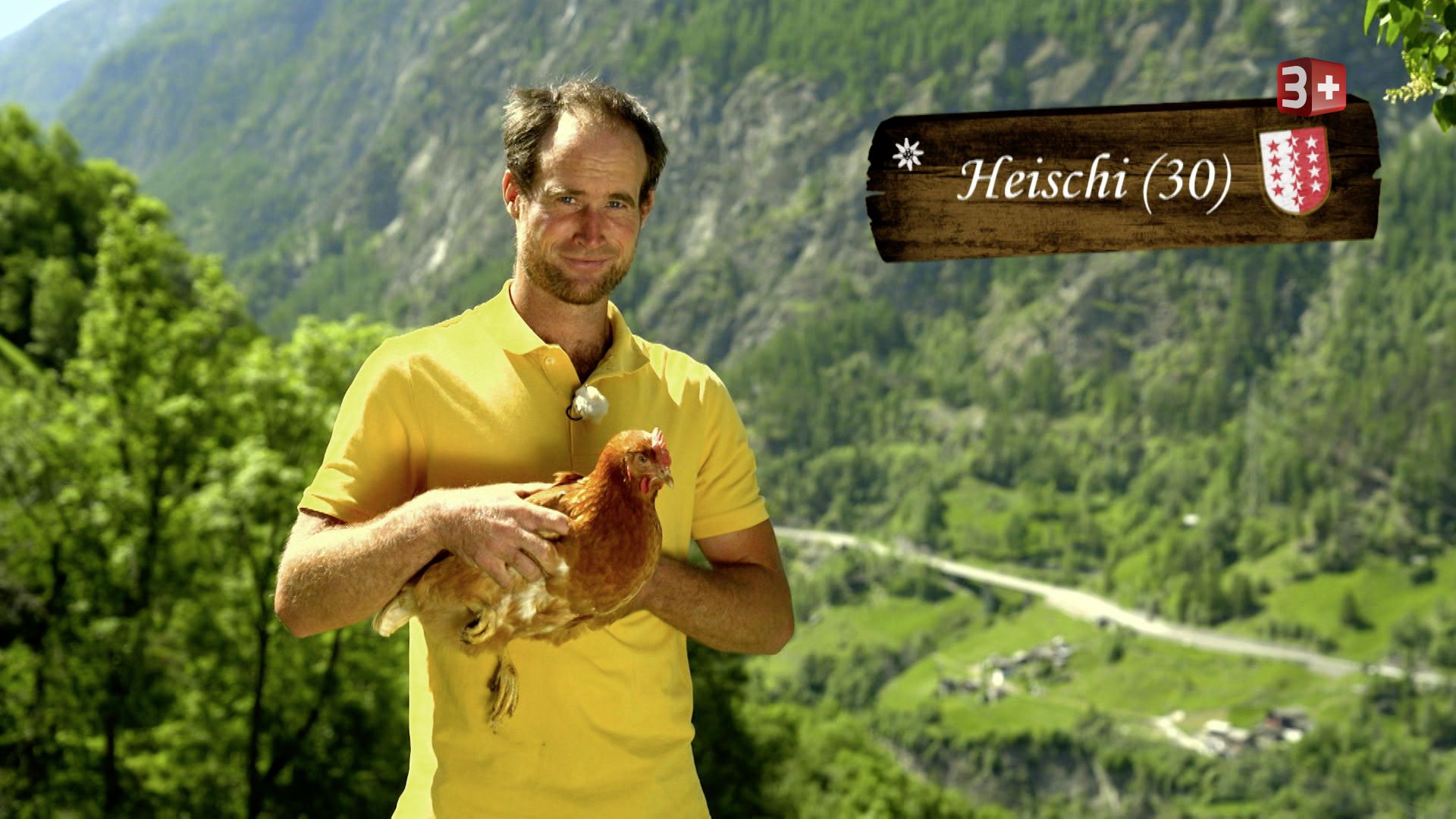 Der Hof von Bauer Heischi ist seit vielen Jahren im Familienbesitz und von Rebbergen umgeben. Nach der Ausbildung zum Landwirt hatte er den Betrieb im Oberwallis übernommen. Der 30-Jährige stellt seinen eigenen Wein her, kümmert sich zudem um 23 Schafe und ist auf der Alp mit Herz und Seele tätig. In den kühlen Wintermonaten ist er am Skilift aufzufinden.